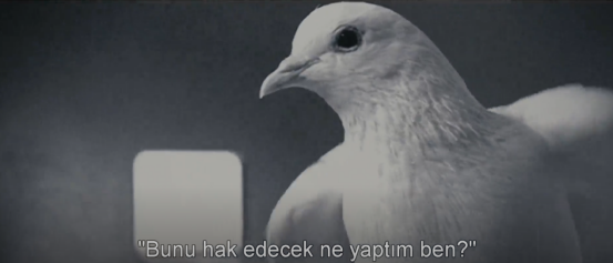 Birçok canlı gibi güvercinler de, düğmeye basması ve ödül kazanması arasında çabucak bir bağ kurar. Fakat zamanlayıcı her 20 saniyede bir otomatik olarak kapağı açmaya başlarsa güvercin "bunu hak edecek ne yaptım ben?" der ve film başlar...